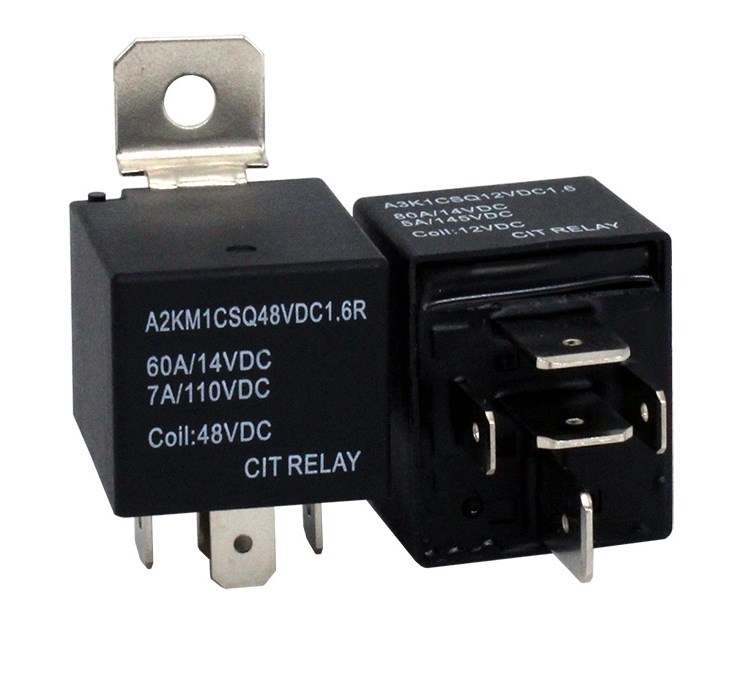 Along with a mounting bracket option, the A2K Series Automotive Relay offers an internal blowout magnet. Large switching capacity up to 60A with coil voltage of 12VDC, 24VDC OR 48VDC. Coil power is 1.6W with contact ratings of 1A or 1C, with or without diode and resistor. The A2 Series dimensions are 26.5 x 32.0 x 33.5mm.